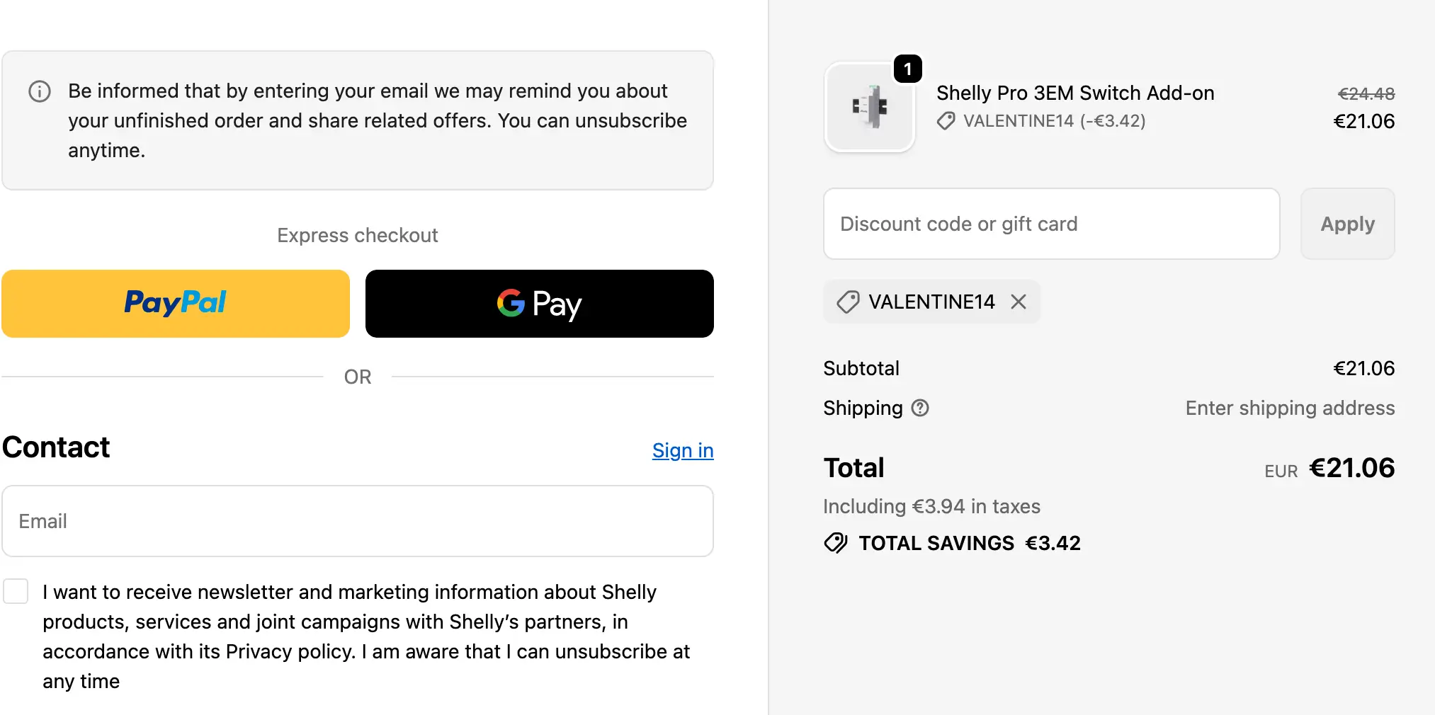 W dniach 13-15 lutego 2026 możesz obniżyć cenę zakupów w Shelly o 14%. Dodaj produkty do koszyka, a następnie w odpowiednim polu wpisz kod rabatowy z tej oferty, żeby zniżka naliczyła się przed płatnością.